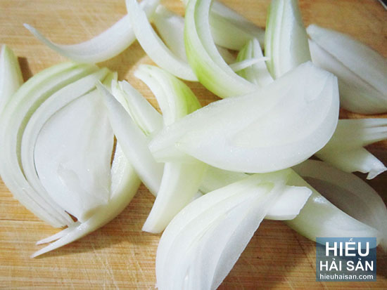 – Tỏi, ớt rửa sạch băm nhỏ. Hành tây bóc bỏ vỏ, thái múi dọc.
