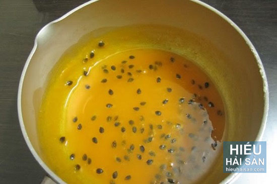 - Đun nóng dầu ăn, phi thơm tỏi, cho nước cốt chanh dây vào trộn đều, cho thêm chút nước dùng. Nêm chút hạt nêm, đường, tiêu. Khi sốt sôi lên thì cho bột năng pha loãng với nước vào, khuấy đều đến khi sốt sệt lại là được.