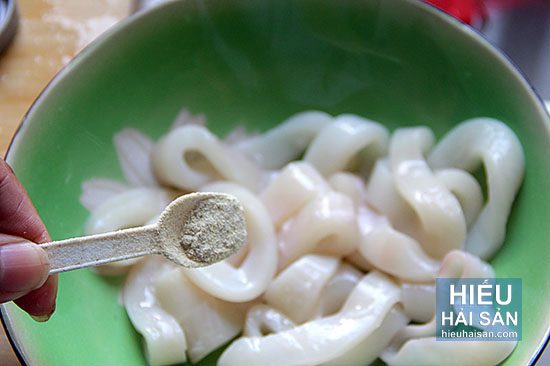 Mực ống làm sạch, ướp với muối, tiêu, hạt nêm