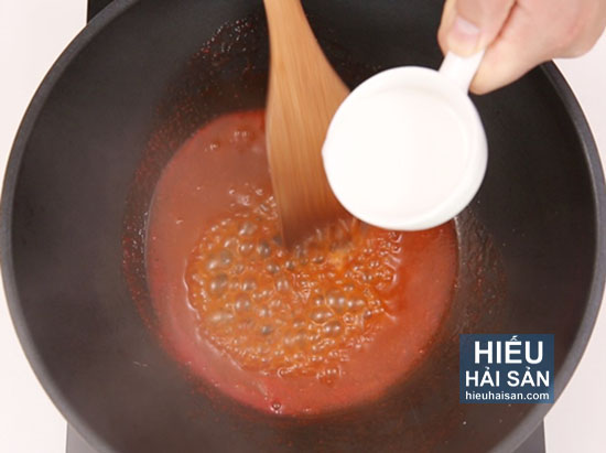 - Làm chảo dầu nóng, cho nước cốt me vào đun sôi, tiếp đến cho dầu hào, muối, hạt nêm, đường, tiêu vào cho sốt có vị chua ngọt là được.
