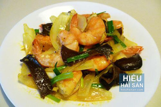 Xào tôm cho thịt săn lại