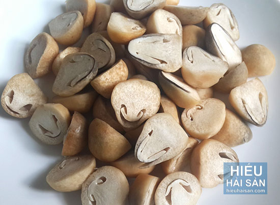 - Nấm rơm rửa sạch, cắt lát, cho vào đảo cùng vỏ tôm khoảng 10 phút.