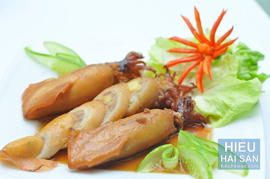 - Món mực này tương tự như mực nhồi thịt nhưng vị ngọt đậm đà và thơm bùi hơn nhiều nhờ phần hạt sen và nước dừa.
