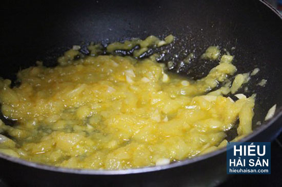 – Làm sốt: Cho thơm vào chảo dầu có hành tỏi phi thơm xào khoảng 3 phút thì nêm nửa thìa nhỏ hạt nêm, 1 muỗng đường, nước dừa, 1 muỗng tương xí muội, 1 thìa nhỏ ớt băm và 1 thìa nước bột năng khuấy đều lên và đun thêm khoảng 5 phút nữa cho sốt sệt lại và tắt bếp.